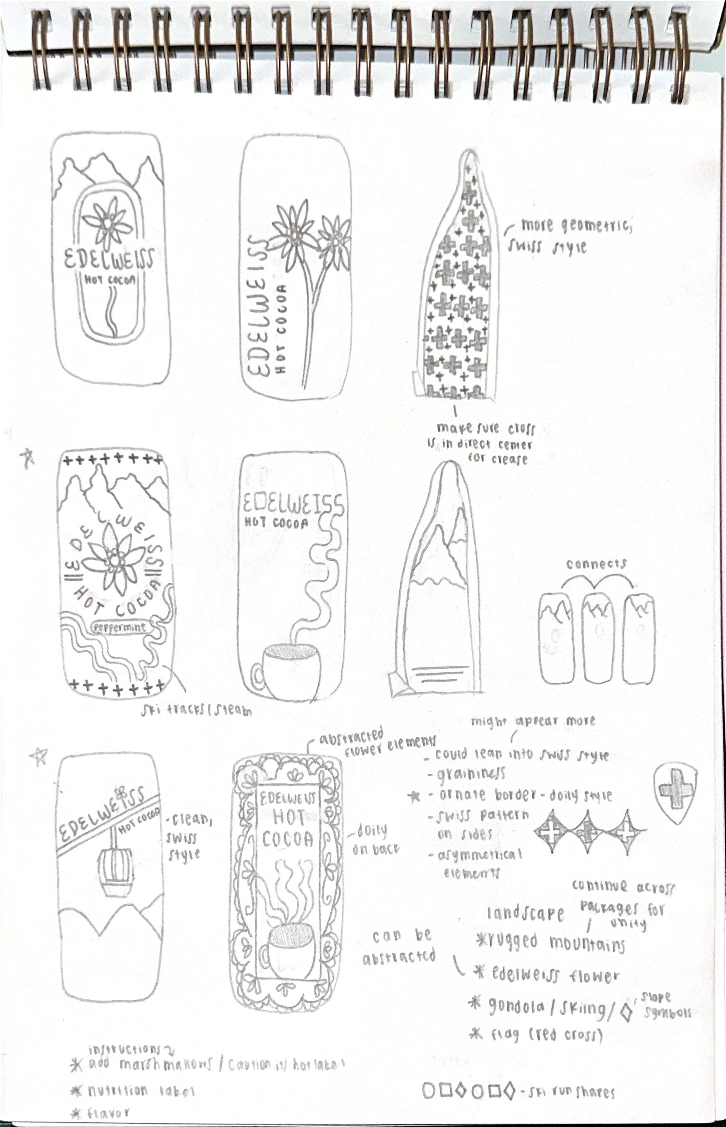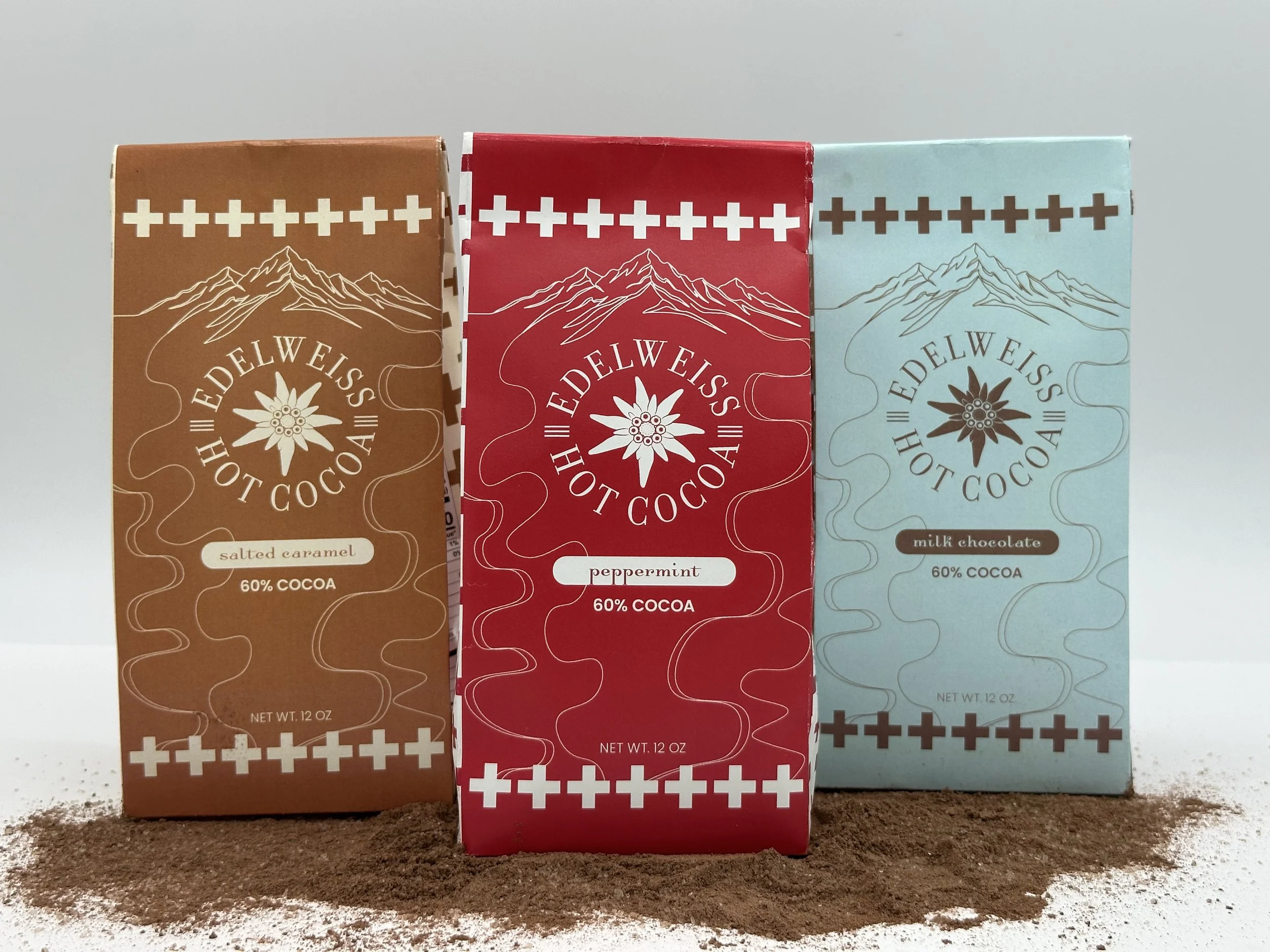 This project explores cultural identity and sustainable design through Edelweiss Hot Cocoa, a brand inspired by Swiss heritage and Alpine tradition. The challenge was to develop modern, visually striking packaging that differentiates Edelweiss from competitors while appealing to consumers seeking indulgence, comfort, and giftable products. The series includes three flavor variants.
