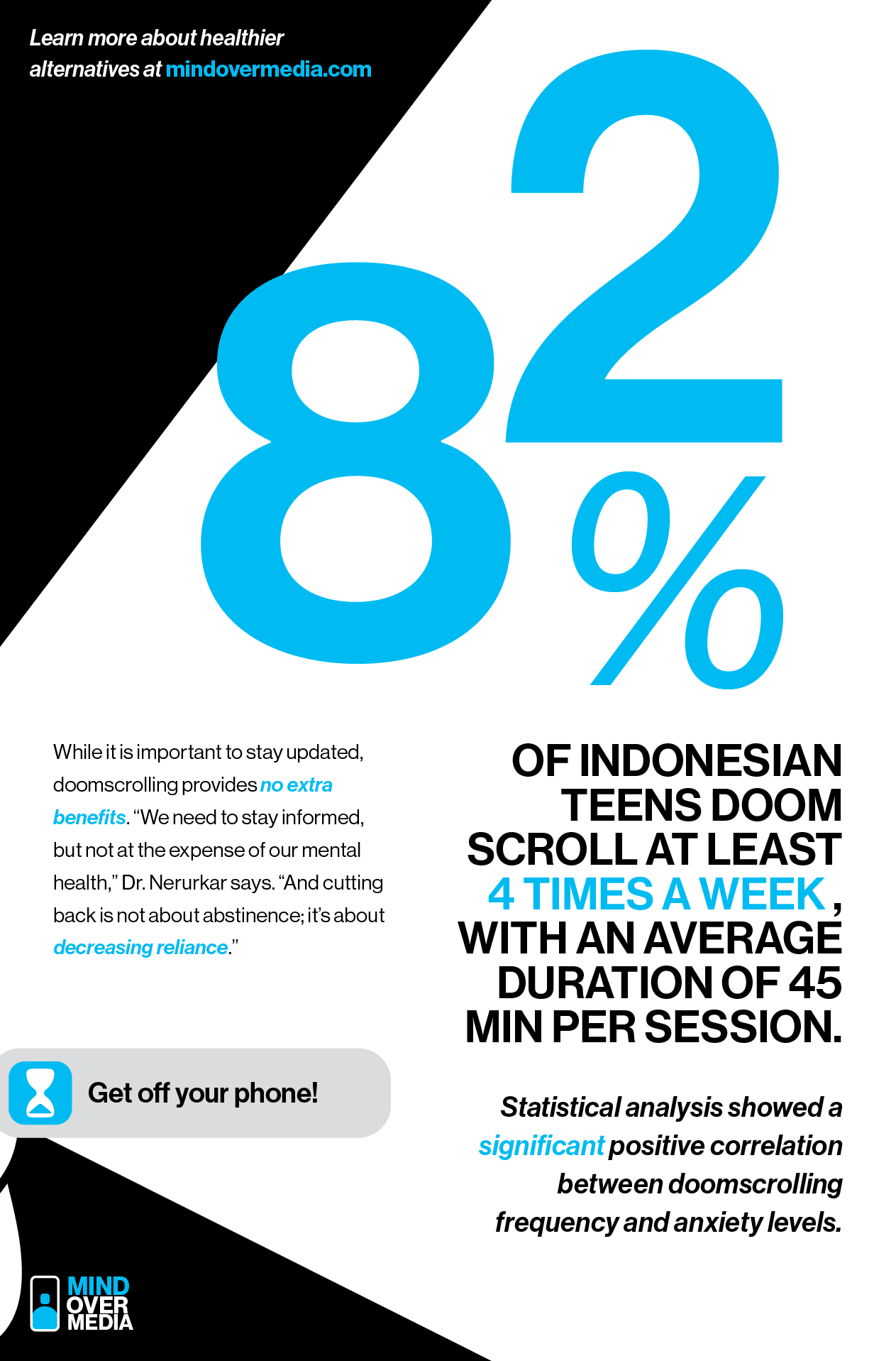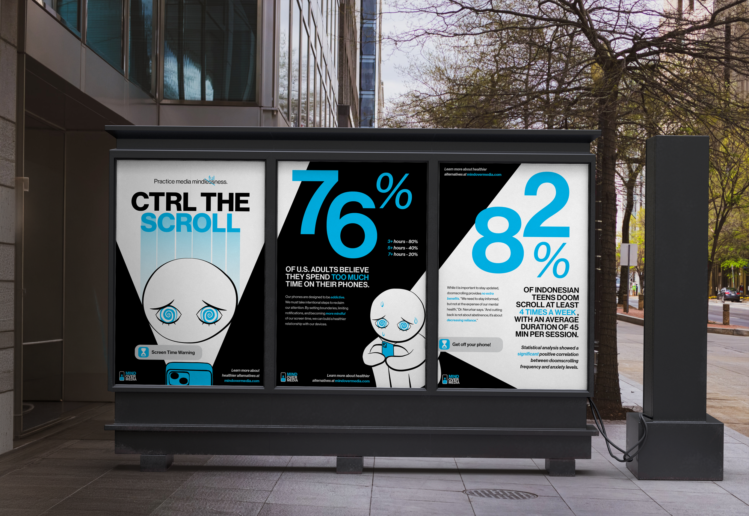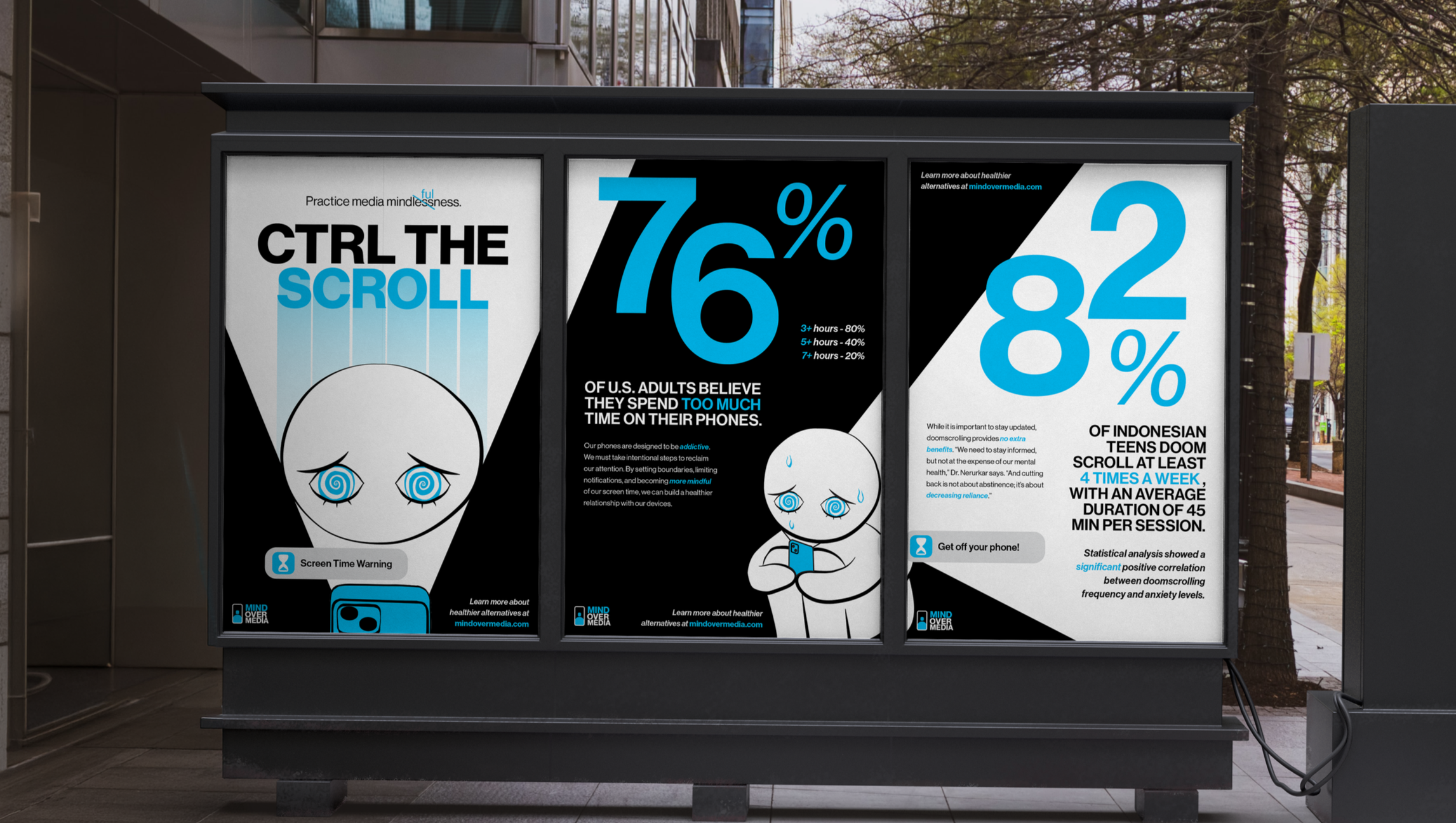 Mind over media is a campaign designed to raise awareness among Gen Z and Millennials about the negative effects of excessive screen time—particularly doomscrolling—on mental health and well-being.
